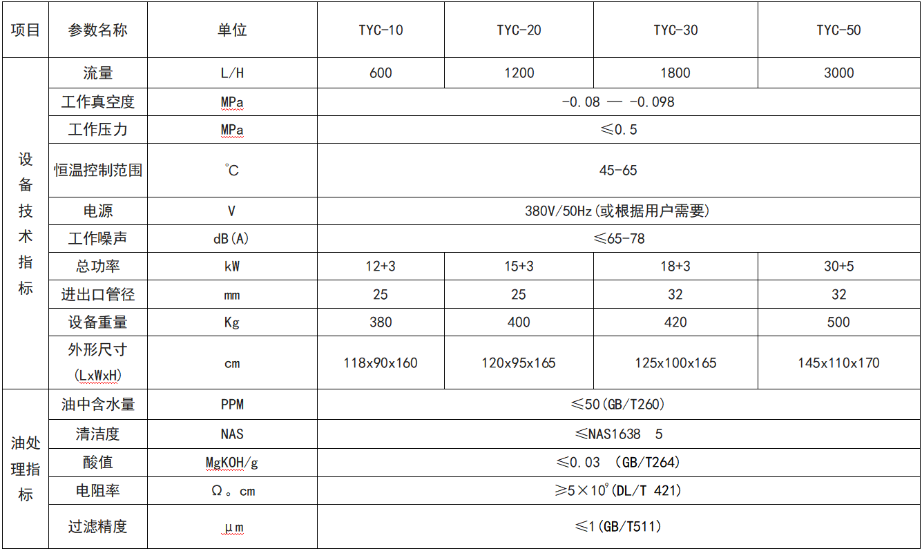 TYC磷酸酯抗燃油滤油机主要用于大、中型火力发电机组调速系统、磷酸酯抗燃油系统、机械设备的抗燃液压油,能对劣化的磷酸酯抗燃油再生净化处理,有效去除抗燃油中的酸、水、杂质以及其他有害物质,使油品的各项指标重新恢复达到使用油标准,保证机组EH油系统的调节、润滑正常工作,延长机组的维修周期。